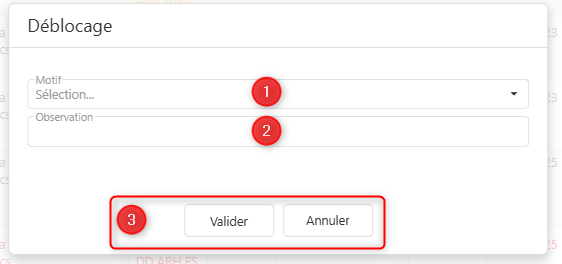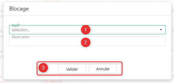 - Sélection du motif de blocage / déblocage