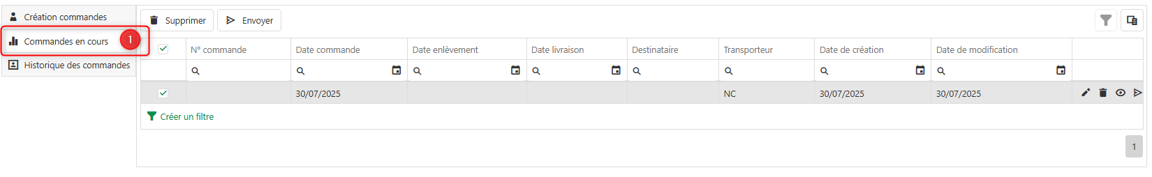 - Cliquez sur l’onglet « Commandes en cours » si vous souhaitez visualiser la liste des commandes n’ayant pas encore été envoyées.